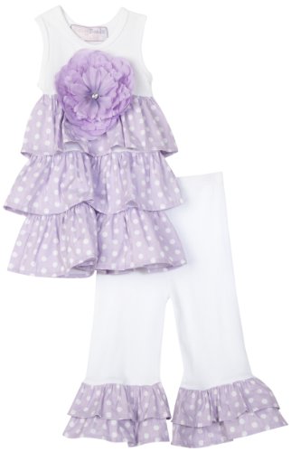 - Start her fashion style right with this 2-piece outfit that includes a tiered tank top and wide leg pants - both adorned with layers of polka dot ruffles